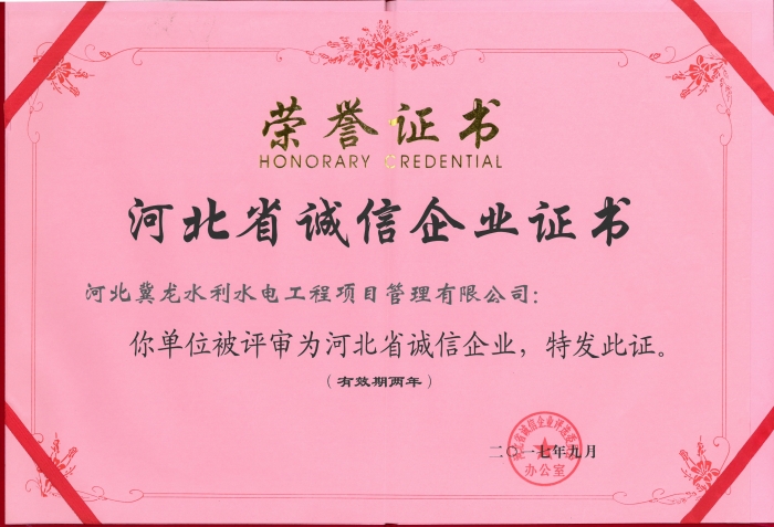 近日,我公司憑借良好的誠信建設(shè)和社會信譽(yù),以誠信理念提升業(yè)務(wù)水平,依法進(jìn)行誠信經(jīng)營管理,以質(zhì)量求生存。信守合同,提高合同履約率。堅持安全生產(chǎn)和文明施工,用安全創(chuàng)信譽(yù)。積極加強(qiáng)誠信管理創(chuàng)新,建立健全內(nèi)部信用培育體系,榮獲“河北省誠信企業(yè)”榮譽(yù)稱號,執(zhí)行董事任本超獲“河北省企業(yè)誠信建設(shè)優(yōu)秀工作者”稱號。