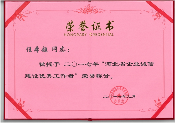 我公司獲“河北省誠信企業(yè)”榮譽(yù)稱號 執(zhí)行董事任本超獲“河北省企業(yè)誠信建設(shè)優(yōu)秀工作者”稱號
