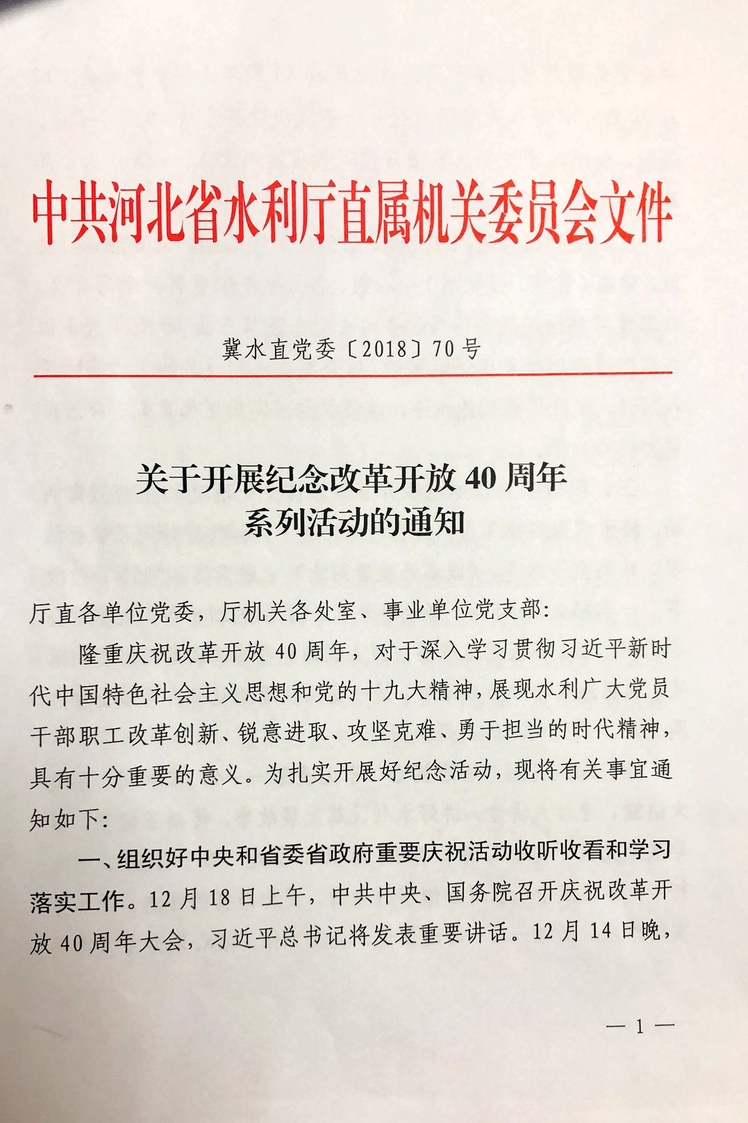 關(guān)于開展紀(jì)念改革開放40周年系列活動(dòng)的通知