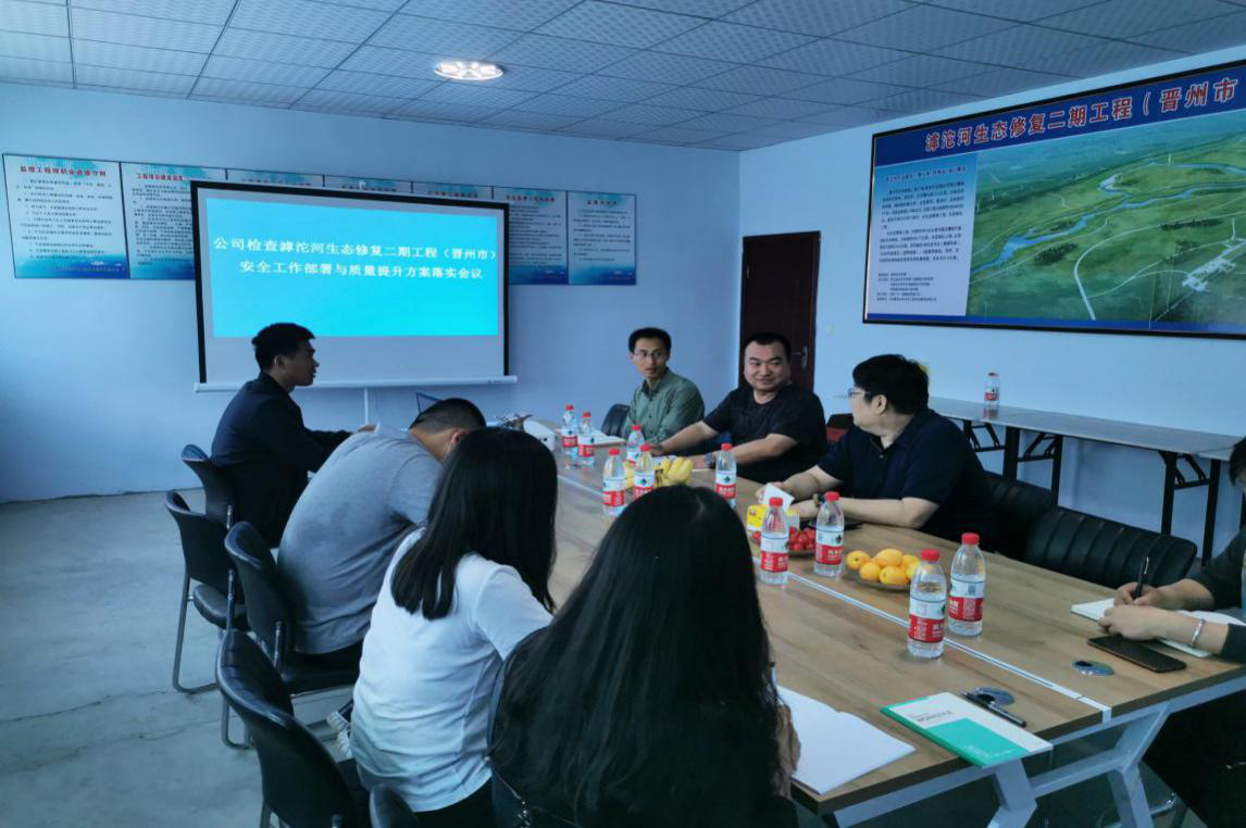 公司執(zhí)行董事任本超實地察看了滹沱河生態(tài)修復修復二期工程(晉州市)施工現(xiàn)場,與監(jiān)理部全體人員進行座談,進一步了解項目的進展。組織召開監(jiān)理安全工作部署與質(zhì)量提升方案落實會議,并對下一步監(jiān)理工作提出要求:
